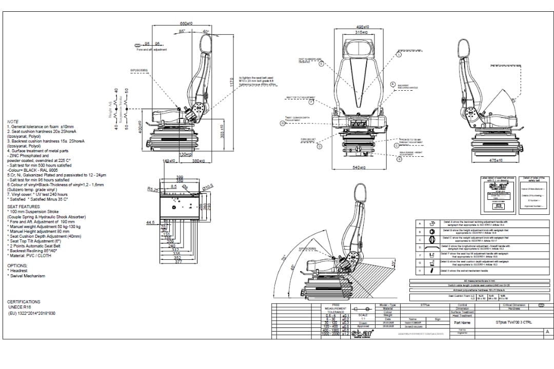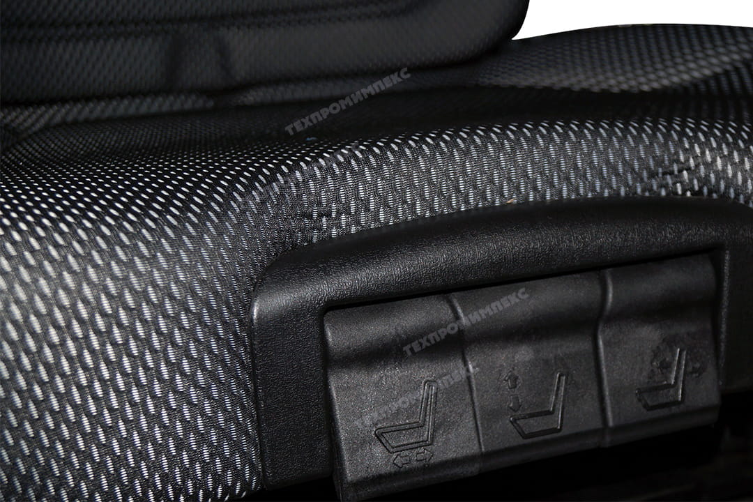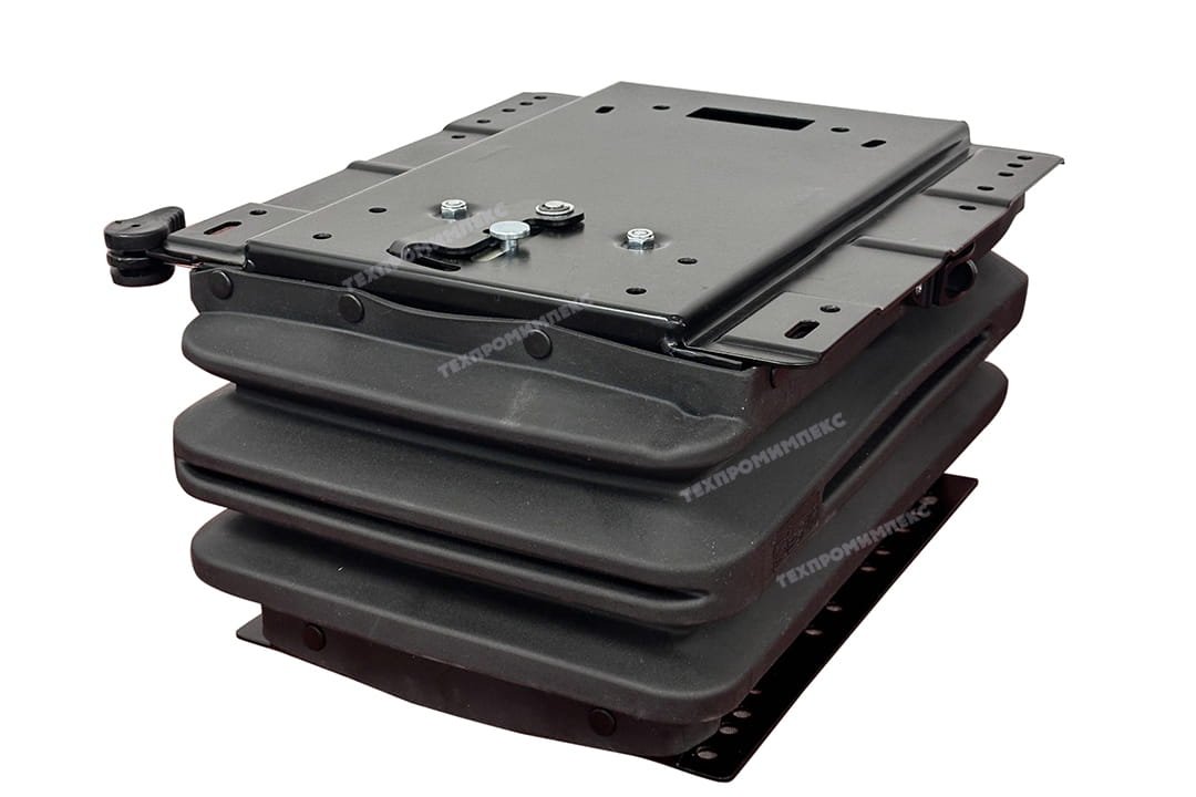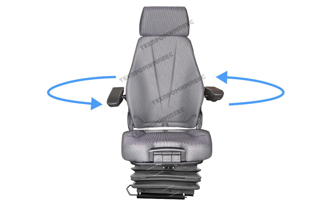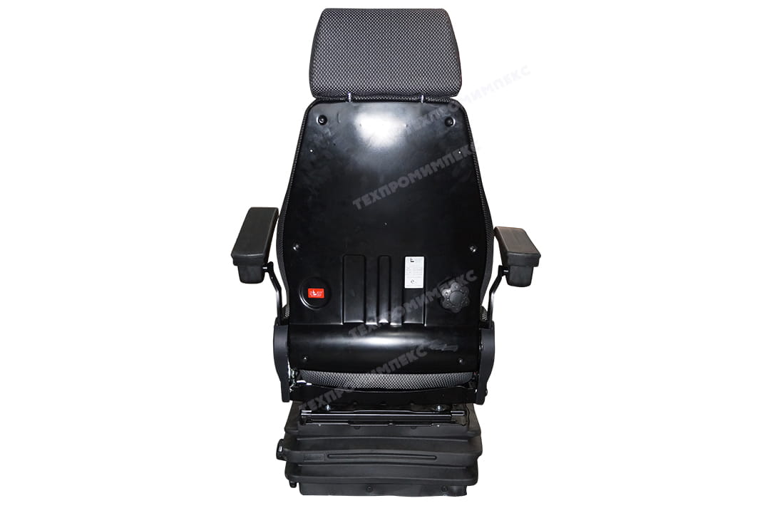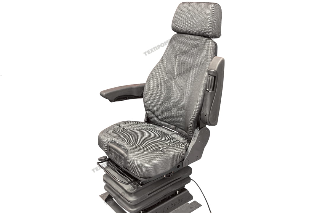 Сиденье оператора с большими габаритными размерами и возможностью распределения нагрузки на систему. Кресло машиниста с высокой спинкой, модель СК-S на усиленной пневматической системе подрессоривания модели СП-104 с водительскими салазками в комплектации без дополнительных опций.