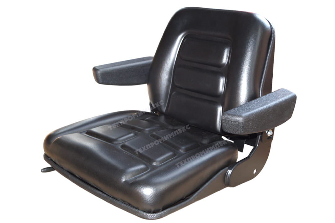 - Универсальность. Подходит для установки на любую технику с плоским полом кабины благодаря салазкам одинарного зацепления. Это идеальное сиденье на погрузчик, кресло для крана-манипулятора, сиденье на МТЗ.