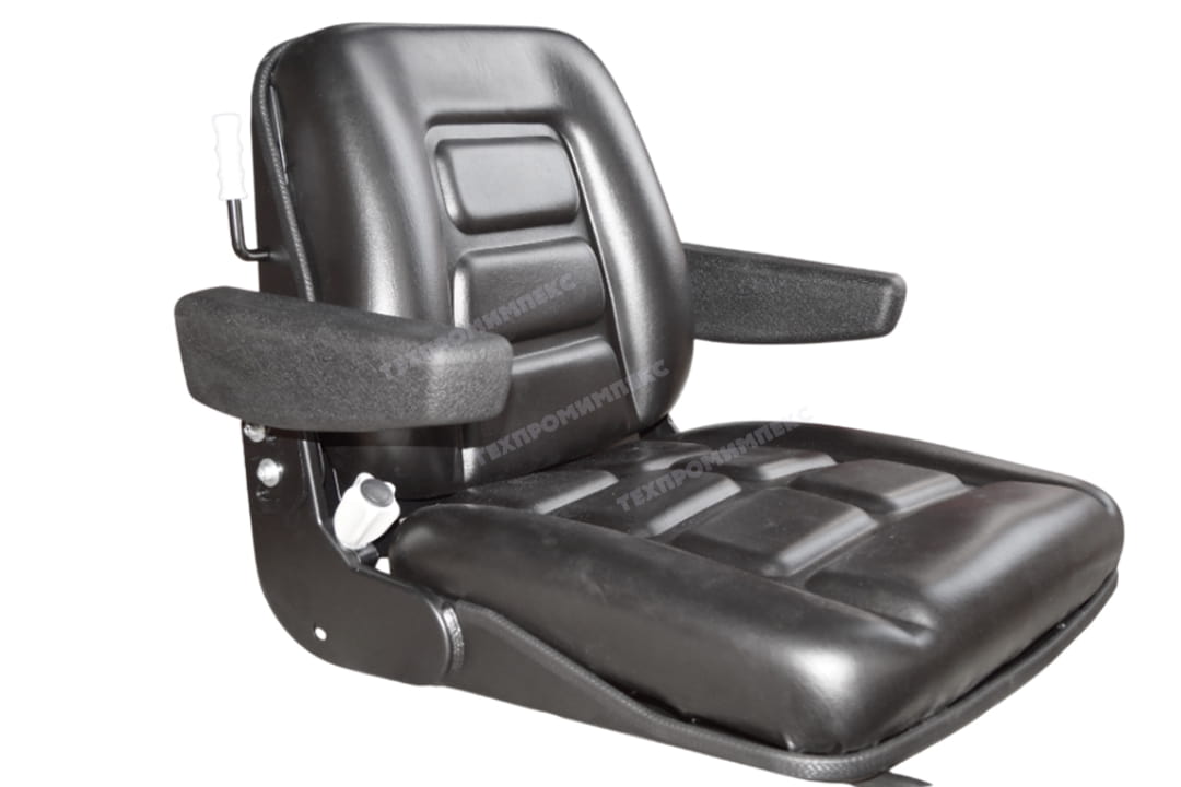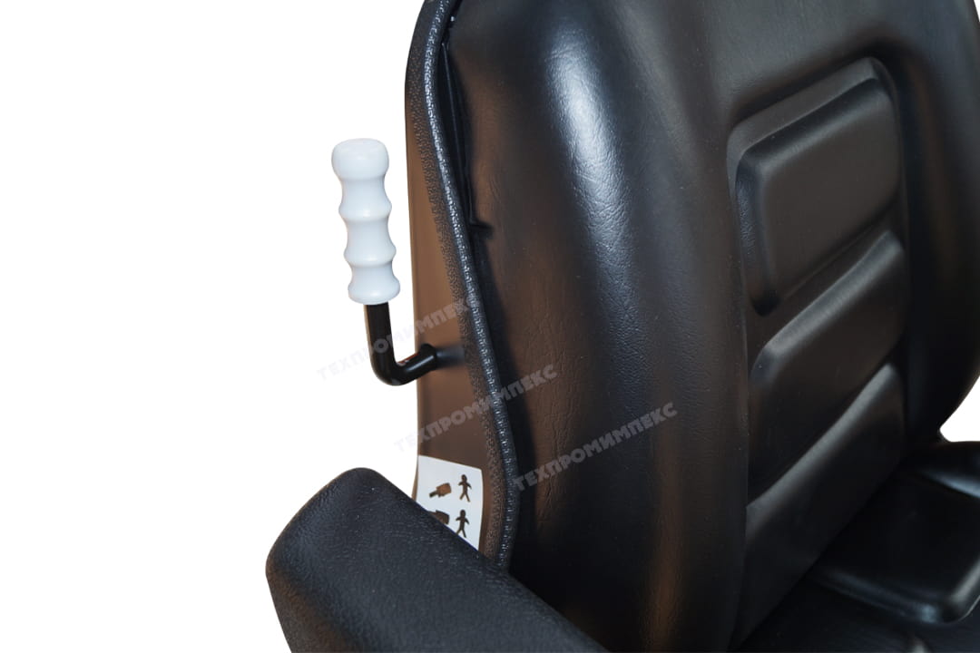 - Эргономика. Складная спинка (до +90°) обеспечивает удобный доступ в кабину и за сиденье. Подлокотники снижают утомляемость оператора.