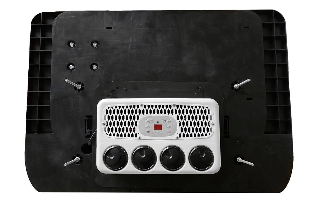 Полностью автономная система, которая не требует вмешательства в штатные воздушные магистрали автомобиля, позволяет осуществить профессиональный монтаж в течении короткого промежутка времени, благодаря размещению моноблока на месте люка вентиляции кабины (с использованием имеющихся крепёжных отверстий) и простейшему электрическому подключению. В комплектацию входит дистанционный пульт, панель потолочная, кронштейны крепления, уплотнитель, комплект монтажный с заглушками, провод силовой (коннектор-АКБ 7м)