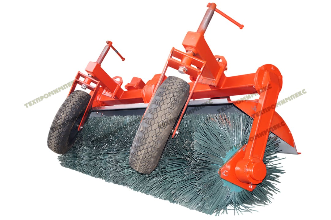 Щетка дорожная оборудована регулируемыми опорными катками с шиной 5х10.