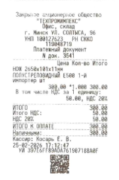Оплата производится в Белорусских рублях до получения товара, после внесения денежных средств, получаете товаросопроводительные документы, а также кассовый чек.